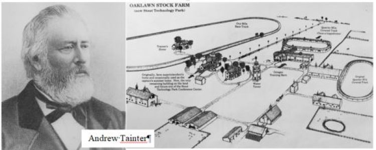 Sawmills became a crucial aspect of the local economy due to the massive amounts of timber being brought into the area. Andrew Tainter entered the scene to coordinate the cutting of the logs and getting them to the mill. He purchased Oaklawn Stock Farm at the east edge of Menomonie, and from his accumulated wealth and investment success he bred trotting horses and other livestock.