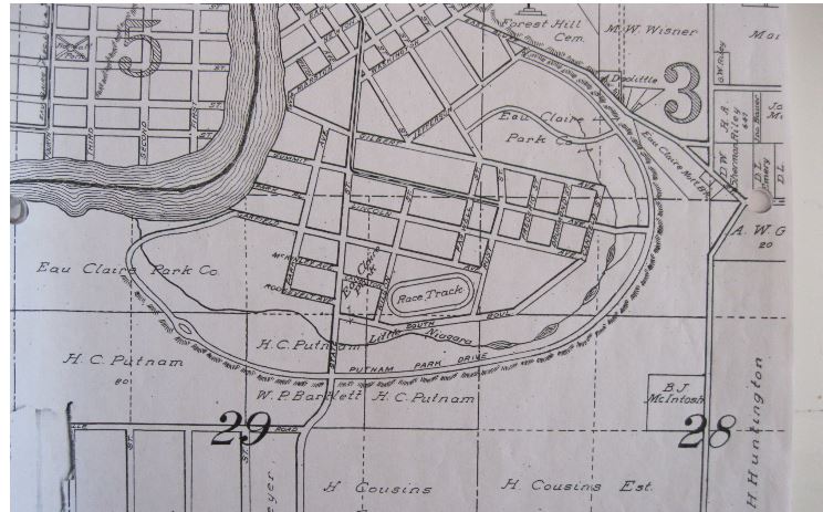 Henry Putnam and William Bartlett, prominent business men in the Eau Claire area, donated land to be used to establish fair grounds, racetracks, driving grounds and other sporting events. These donations of land were presented to the City of Eau Claire for the enjoyment of all the residents. The first of these series of parks was located at the top of State St. hill. It remained active until 1910 when it was moved to the bottom of the hill, east of the University of Eau Claire on Garfield Avenue.