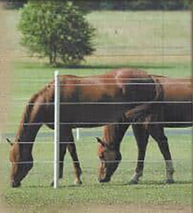 Though fencing for horses has many similarities to typical livestock fences they typically are somewhat taller and offer more visibility. A basic high tensile horse fence consists of three, four, or five strands of high tensile wire. Often the top and several other wires are insulated. If the fence is energized and remains energized while horses are in the pasture, they will keep their distance and avoid involvement and injury with the fence.