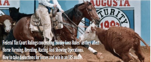 If you have a farm, whether it be a horse farm or some other type of farm activity, and have not been taking deductions on your income tax return it might be wise to review your position. You need not be a full-time farmer. If you have been taking the deductions, you would be wise to tailor your activity to meet the criteria laid out by the courts as cited in this article.