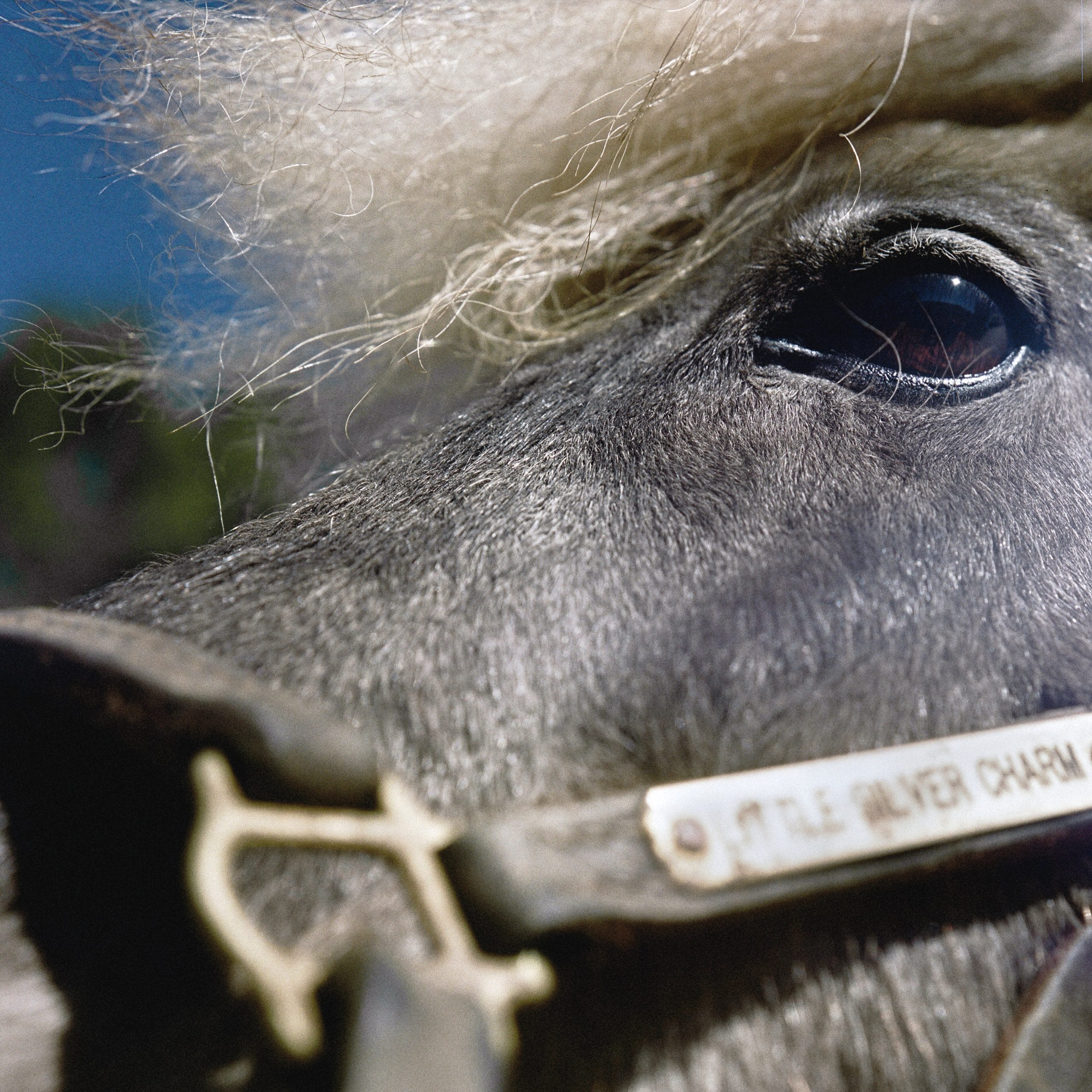 Silver Charm, a 1,200-pound Thoroughbred with a white coat peppered by tiny flecks of gray, leaned over the top railing of the pasture fence and nibbled at the lips of the man with the cap turned backwards. Michael Blowen, his eyes closed, accepted the proffered kiss, then turned to a visitor standing nearby.